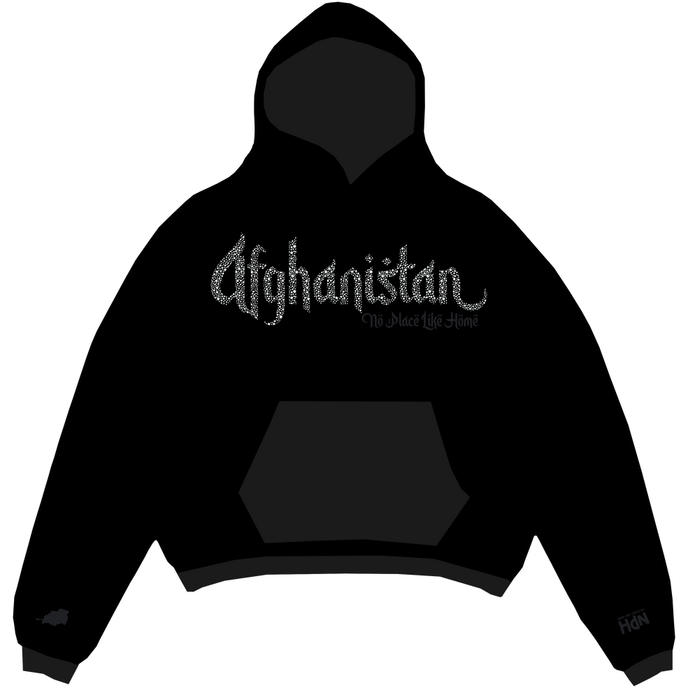 Front: Afghanistan logo rhinestoned with embroidered details.