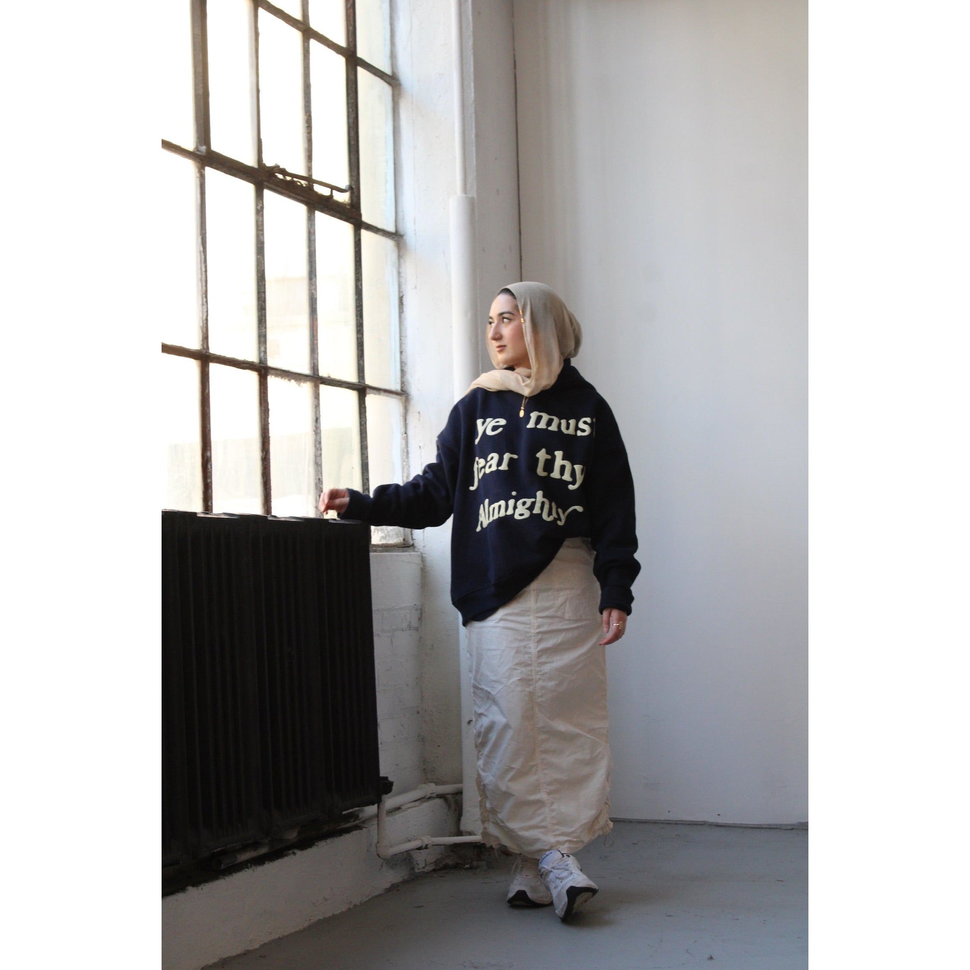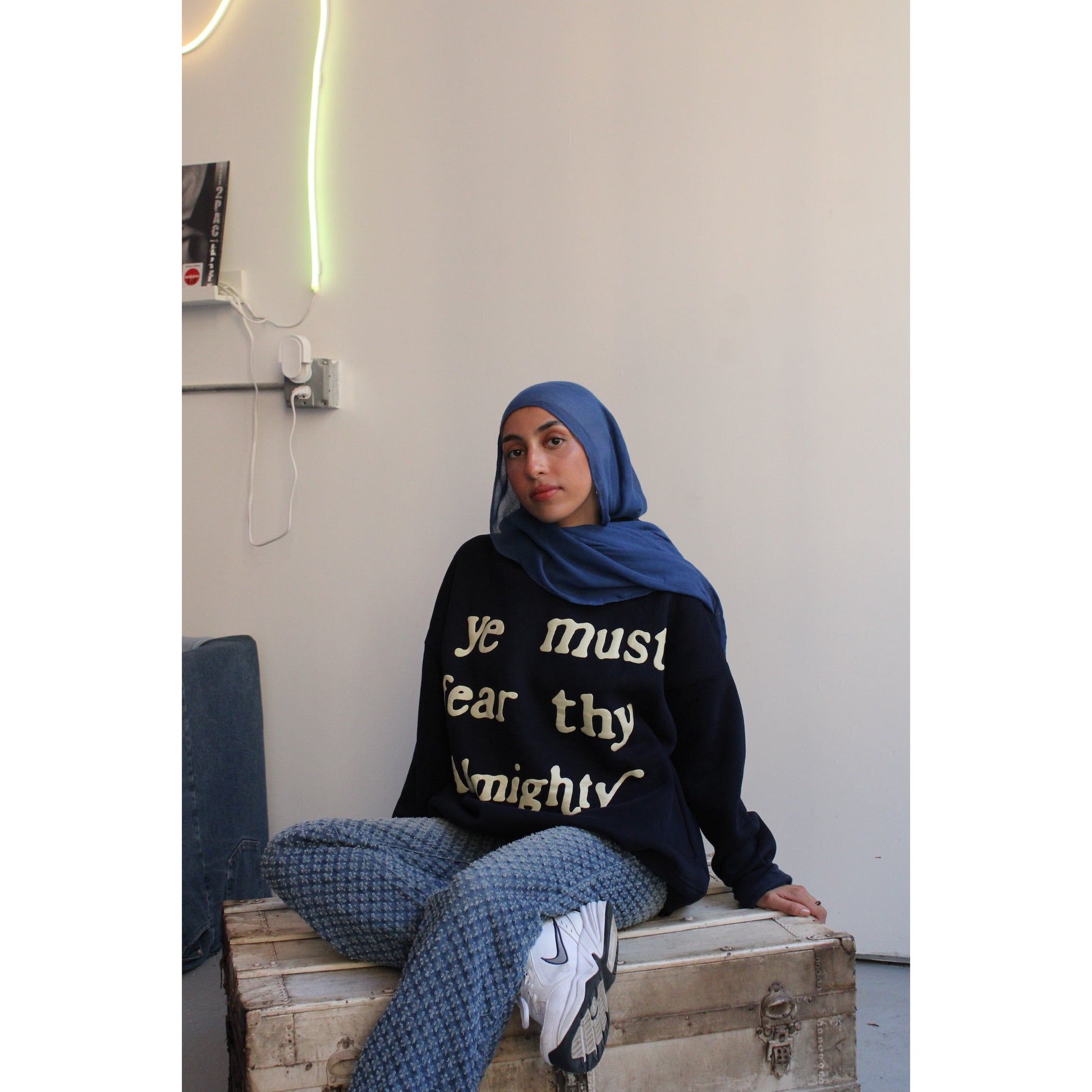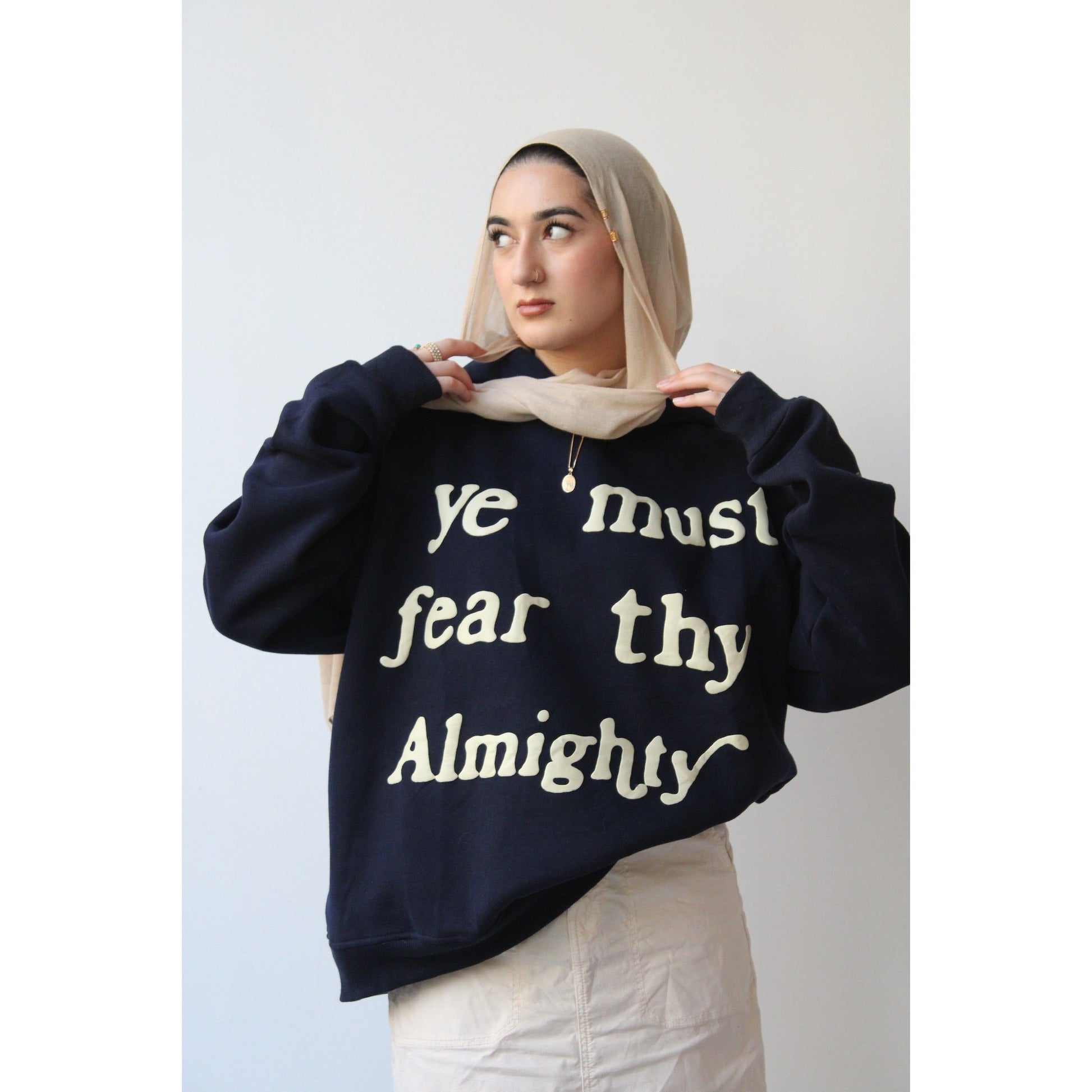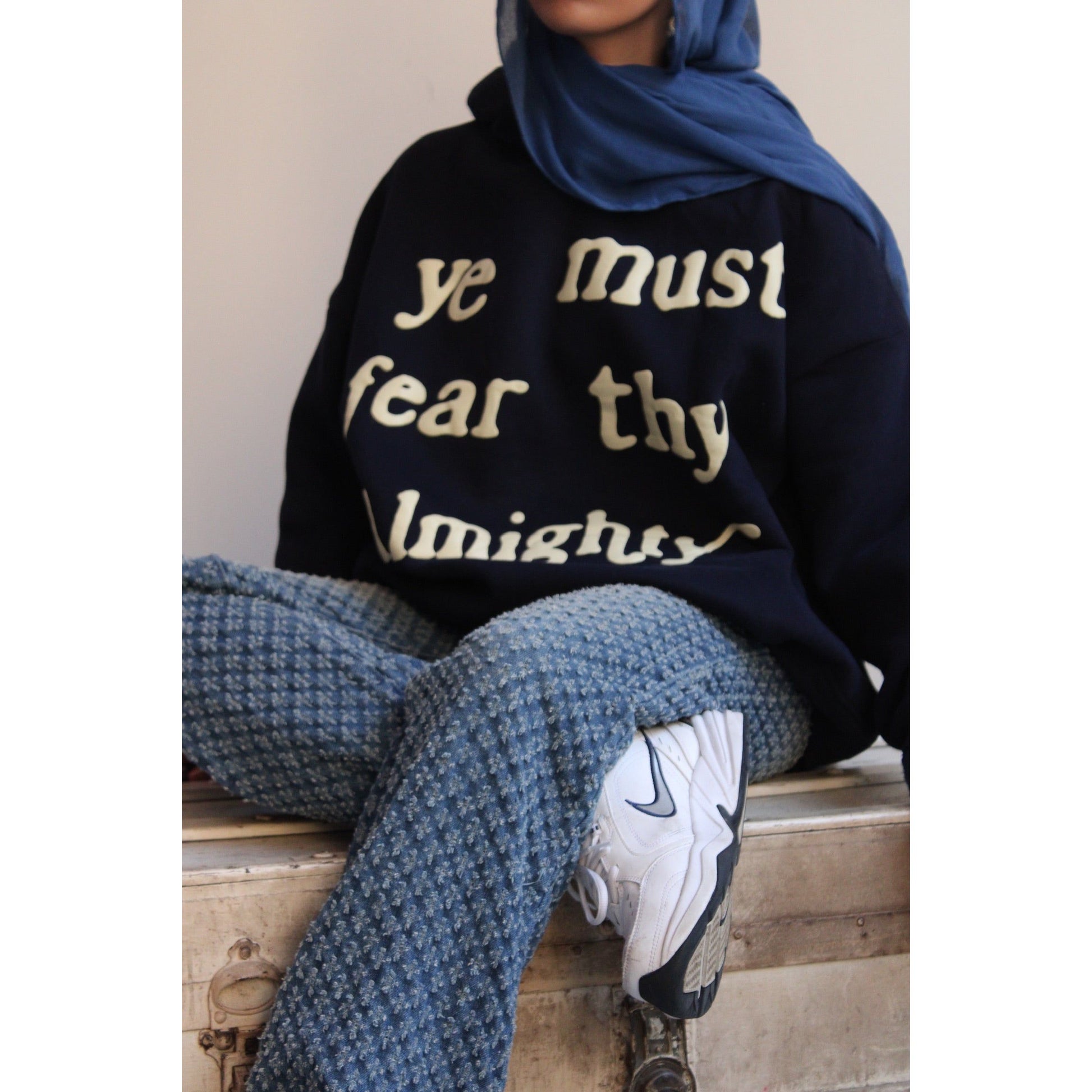 “Ye must fear thy Almighty” Ovesized Hoodie - Navy Blue